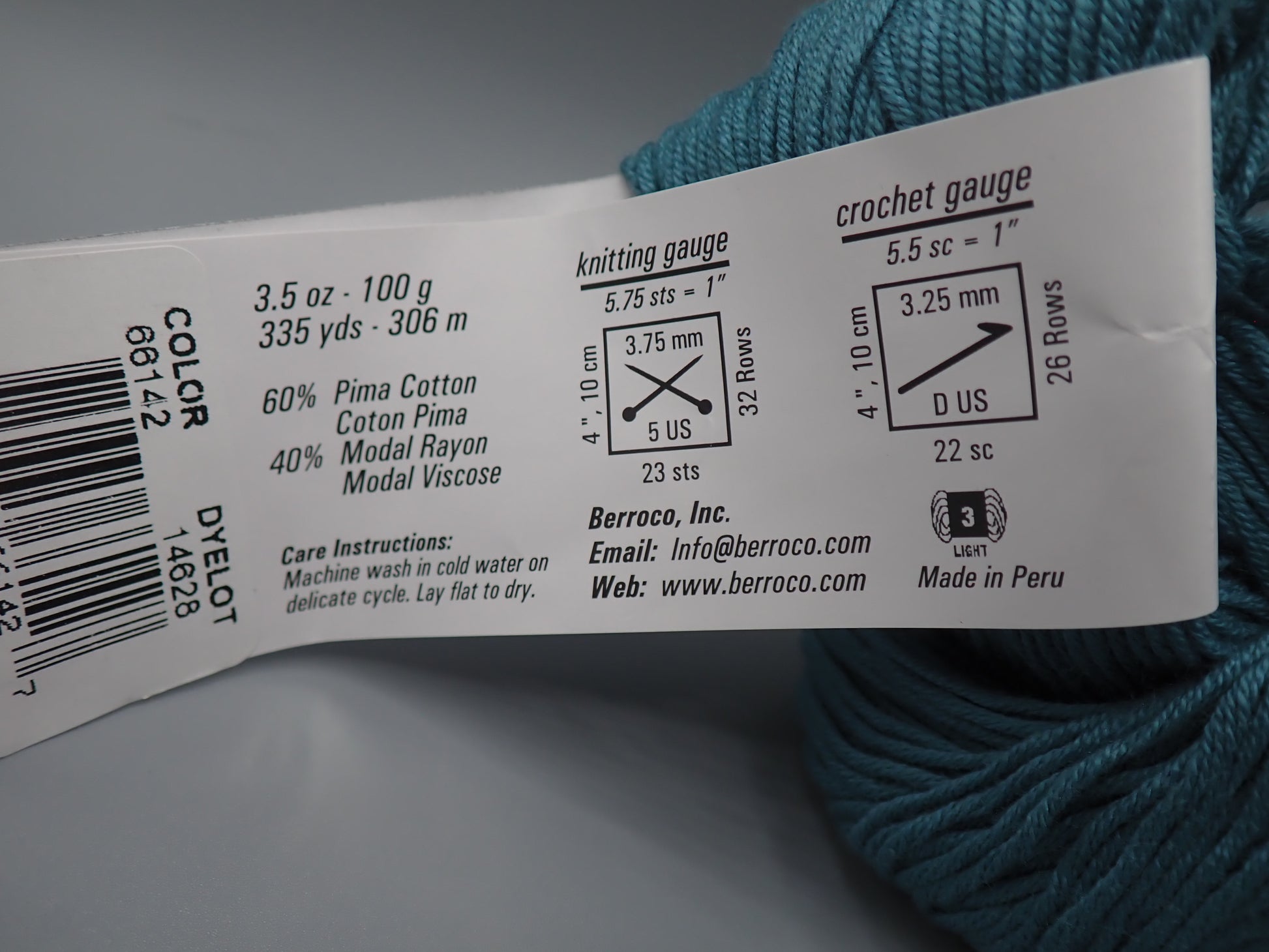 Berroco's popular Modern Cotton yarn is now available in a DK weight! This blend of Pima cotton and Modal rayon is specially twisted to ensure stitch definition isn't sacrificed for a soft hand.