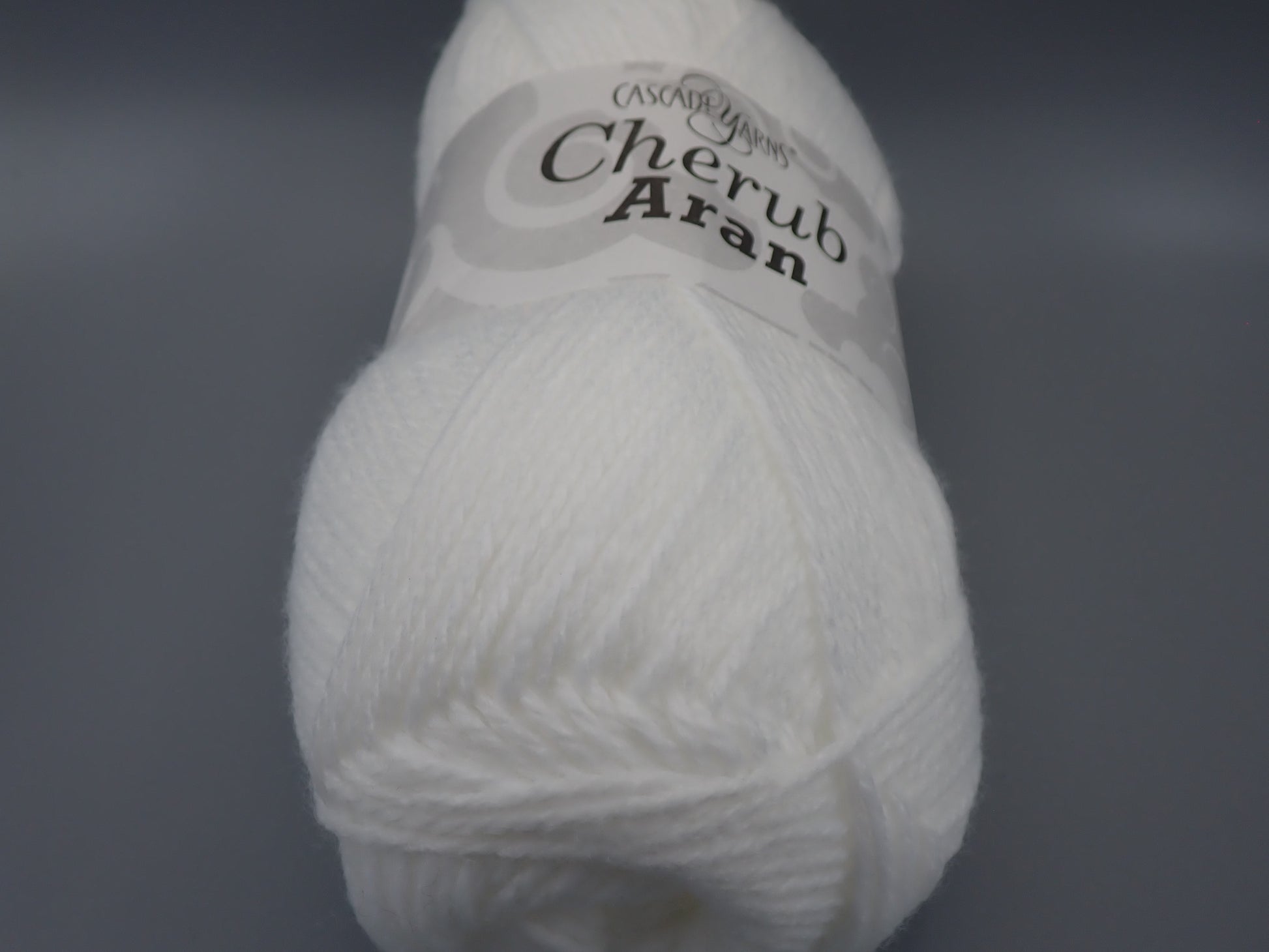 Cherub Aran is a surprisingly soft blend of nylon and acrylic that feels nice to the touch. Cherub Aran is not only soft but also machine washable and dryable which makes it great for kid’s knits or easy care adult garments and accessories. This is a worsted weight yarn.