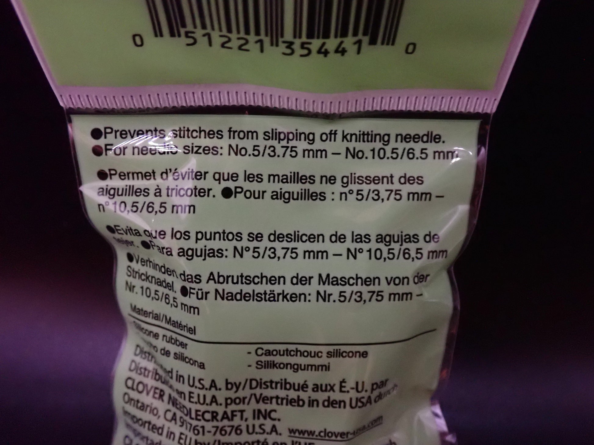 Silicone knitting needle cap that prevents knitting stitches from slipping off the needle. Works for both straight and circular needles.
