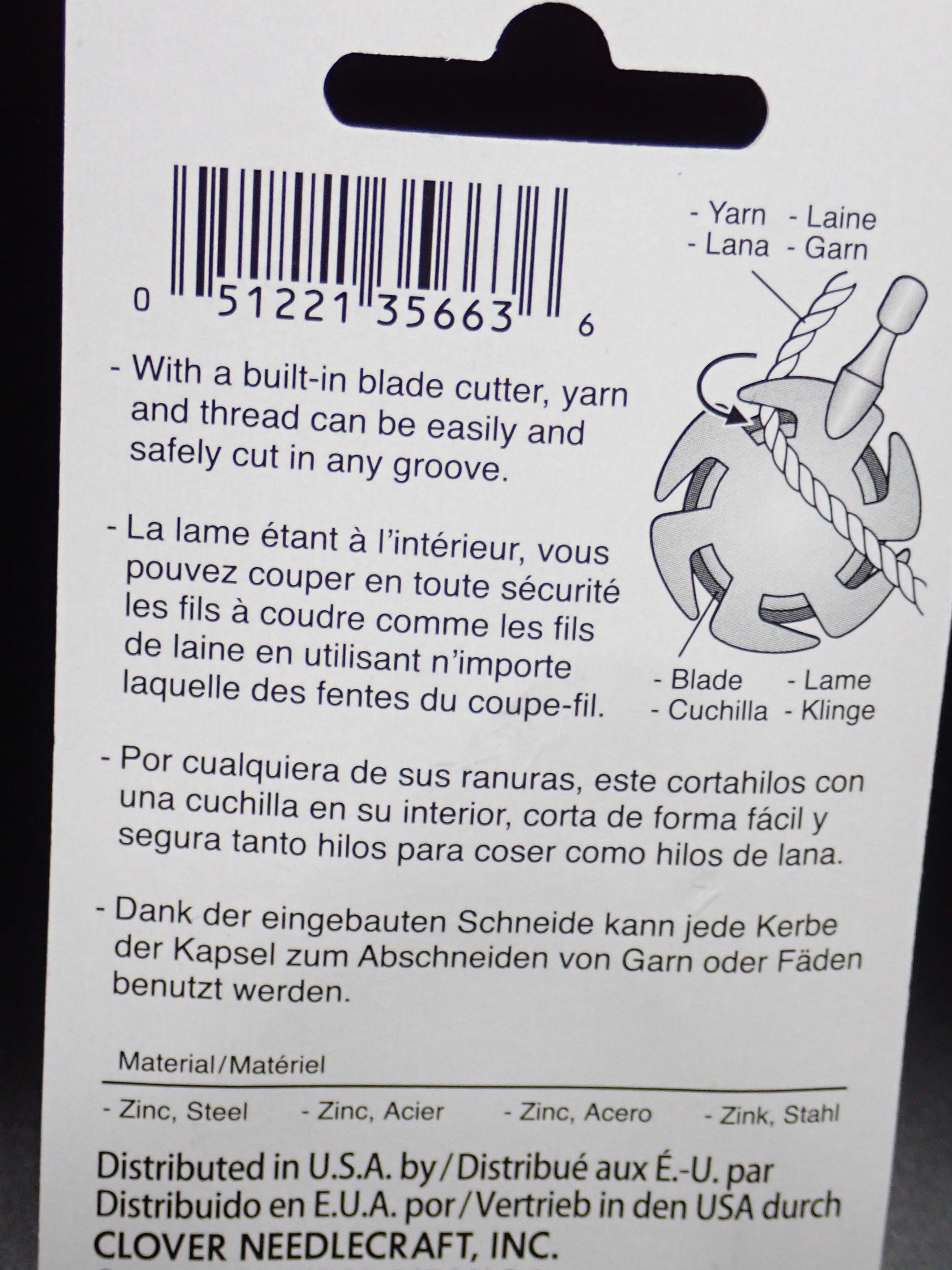 Yarn, or almost any threads, can be cut using any of the grooves. As the rotary cutting blade is integrated with the pendant design, it is safe to use and carry with you. As there are sharp edges to the blade, I still recommend caution when reaching into your notions bag.