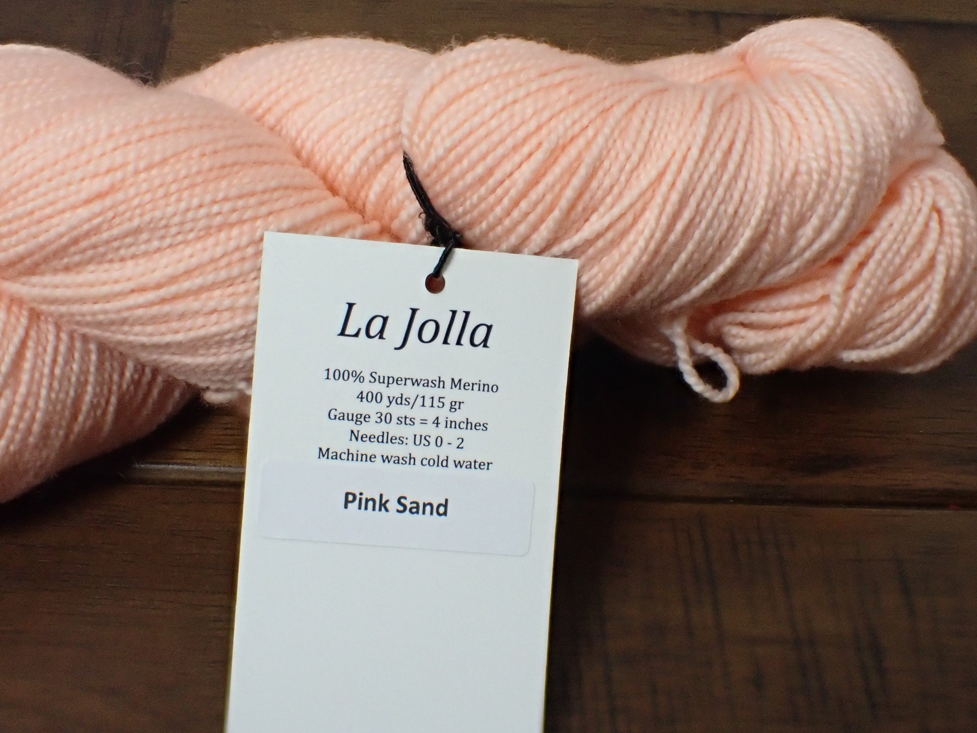 Baah La Jolla in Pink Sand. A mix of pale pinks and peaches to brighten any day. Reminiscent of a day spent at the beach wrapped in a cozy scarf. Fingering Weight. 100% Superwash Merino yarn. 400 yards. Machine wash cold water. $25.00 per skein.