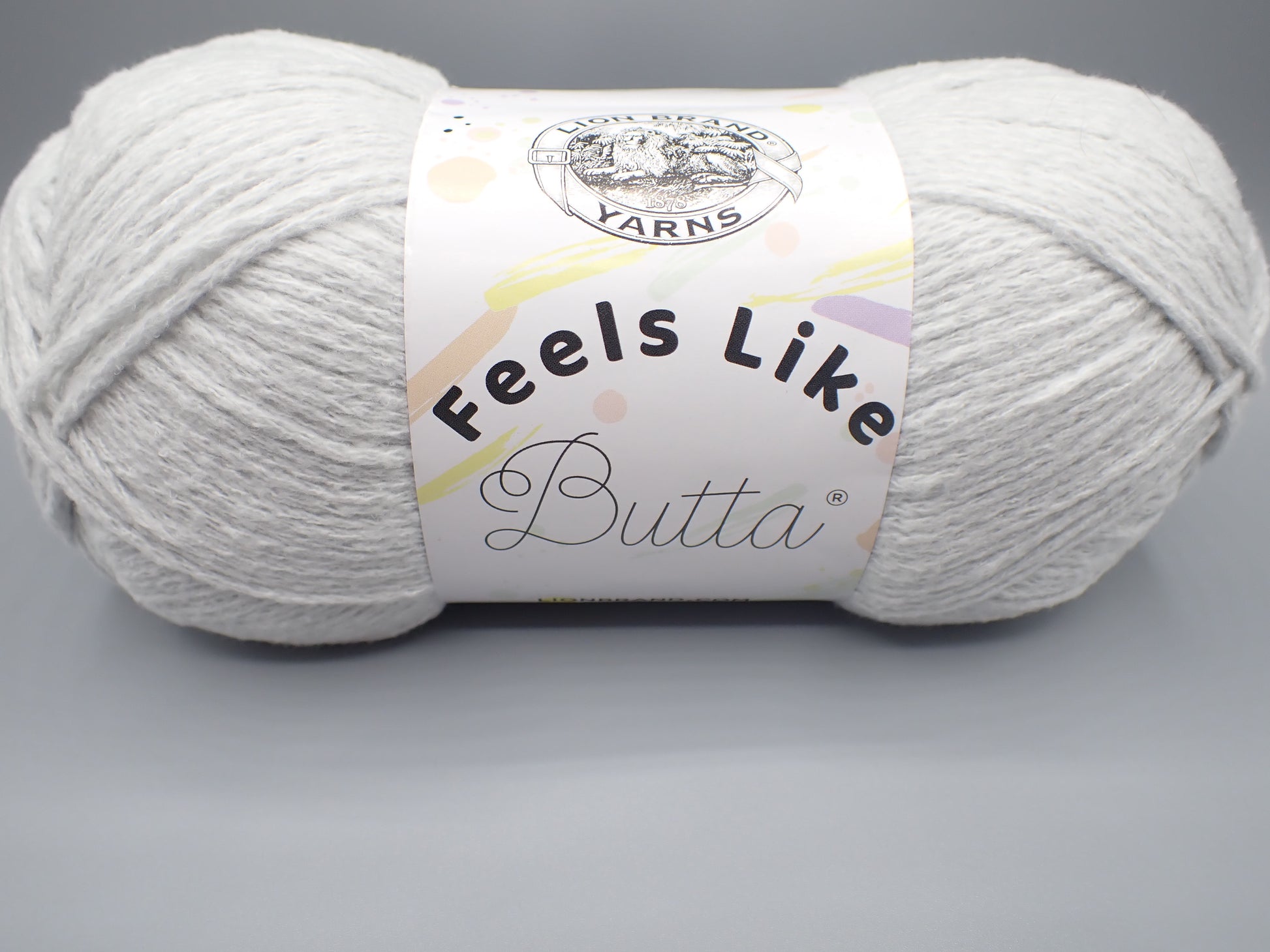 Lion Brand Feels Like Butta has a nice velvety feel similar to chenille. This is so comfy it can be worn close to the skin. A worsted weight yarn, 100% Polyester, 218 yards, machine wash and dry.