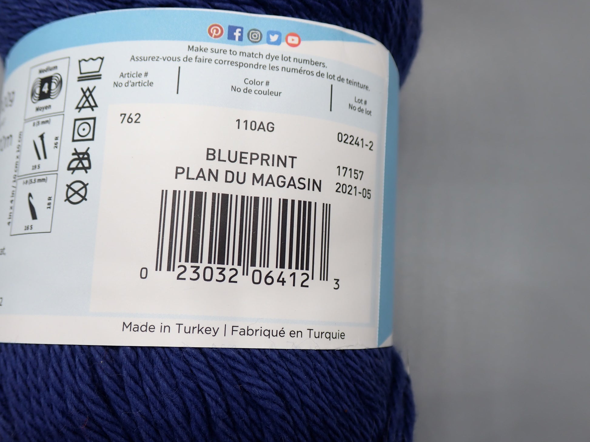 100% Pima Cotton, worsted weight, 186 yards, machine wash and dry.