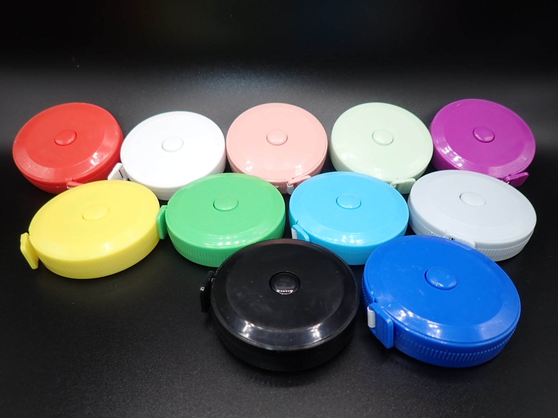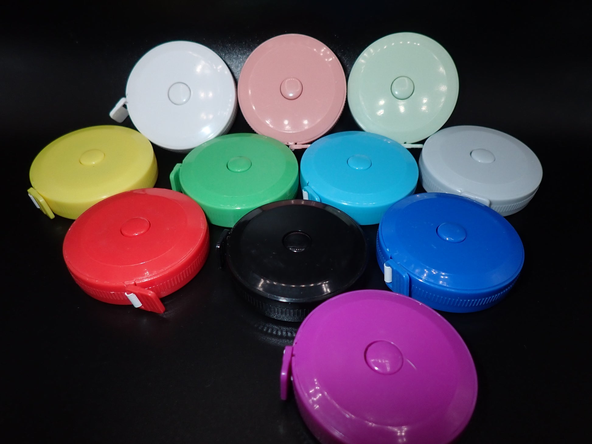 Handy retractable tape measure for keeping track of the size of your projects. Lightweight, flexible tape, measures in both inches and centimeters. Measures up to 60".
