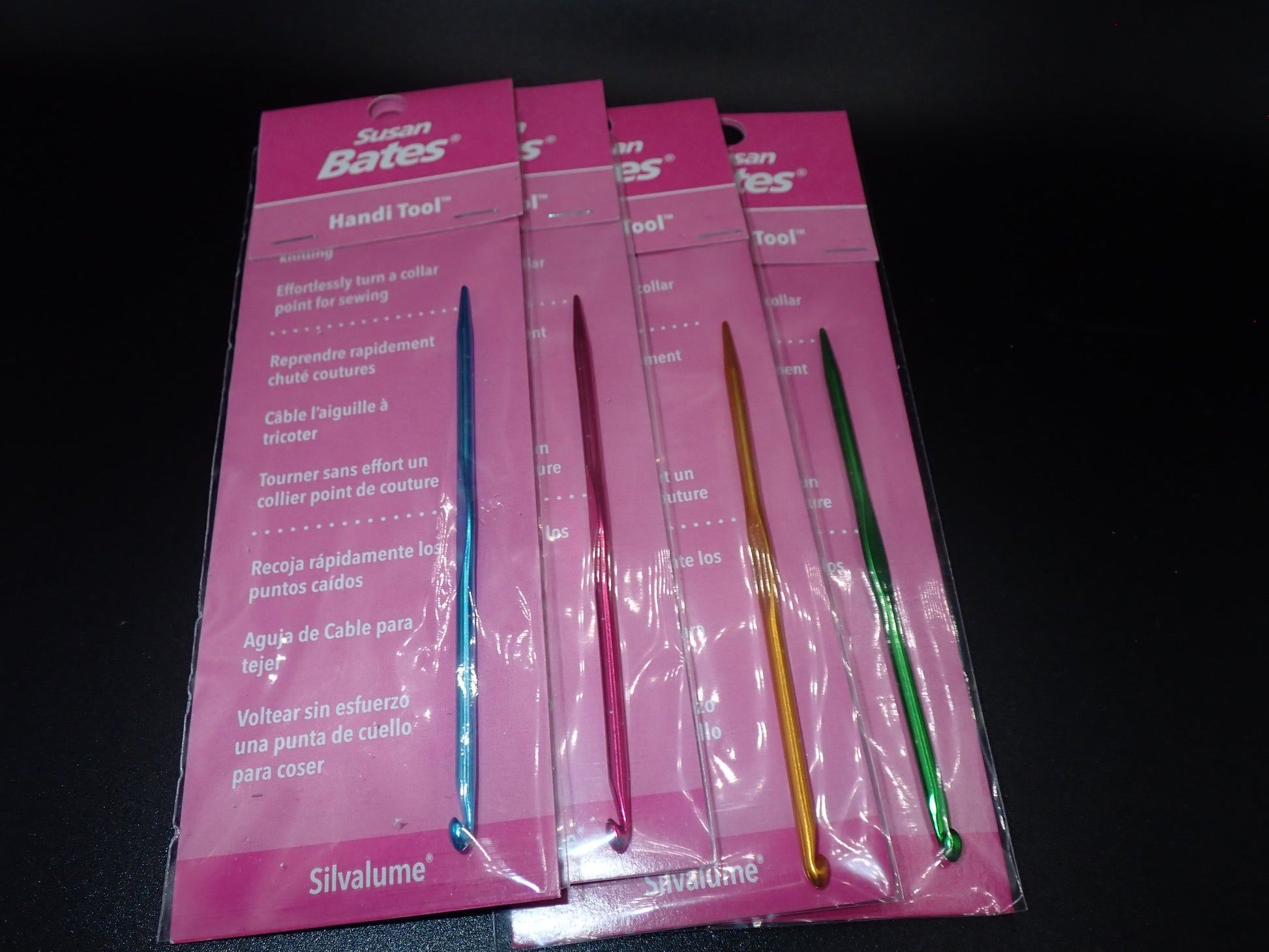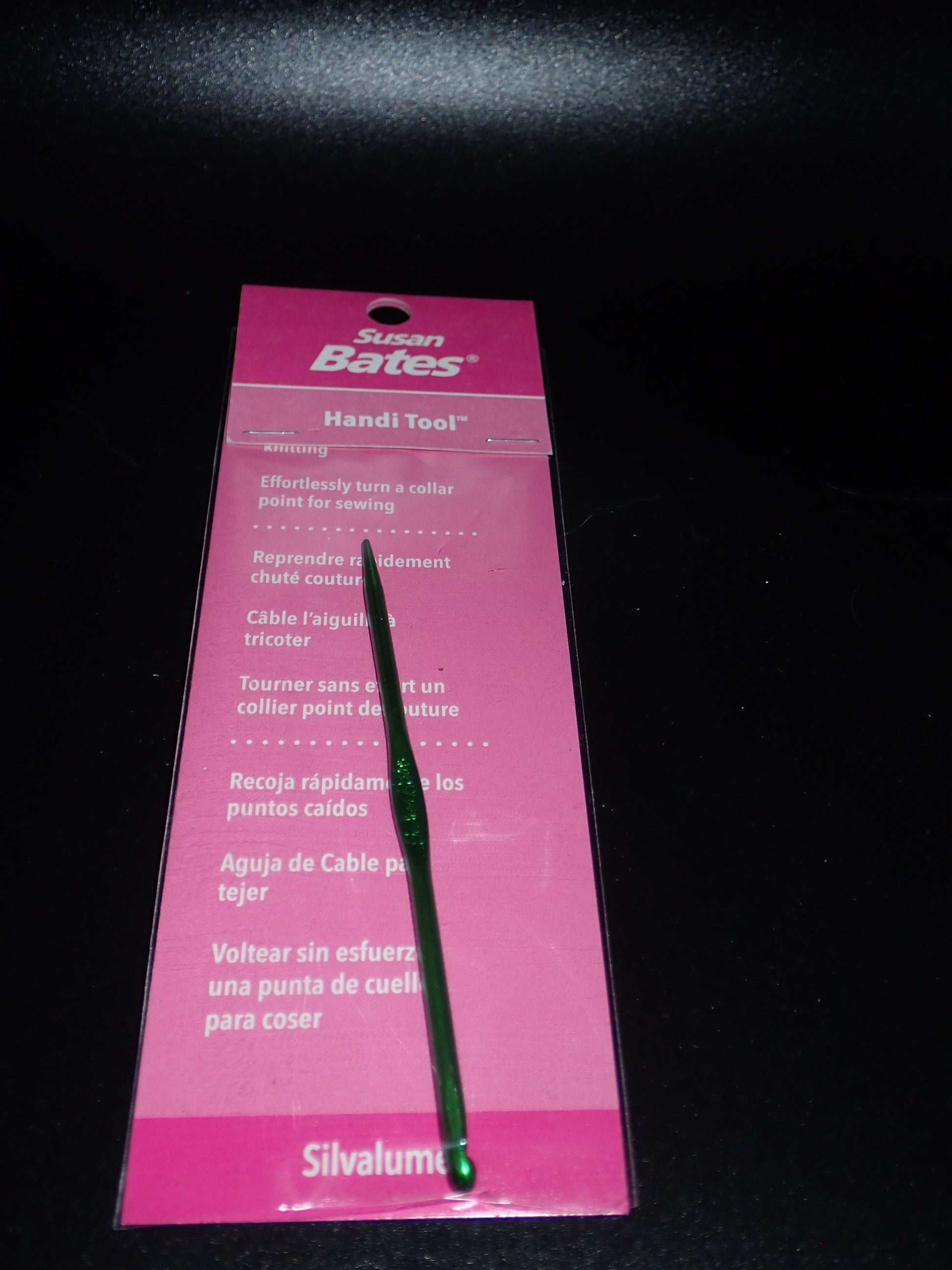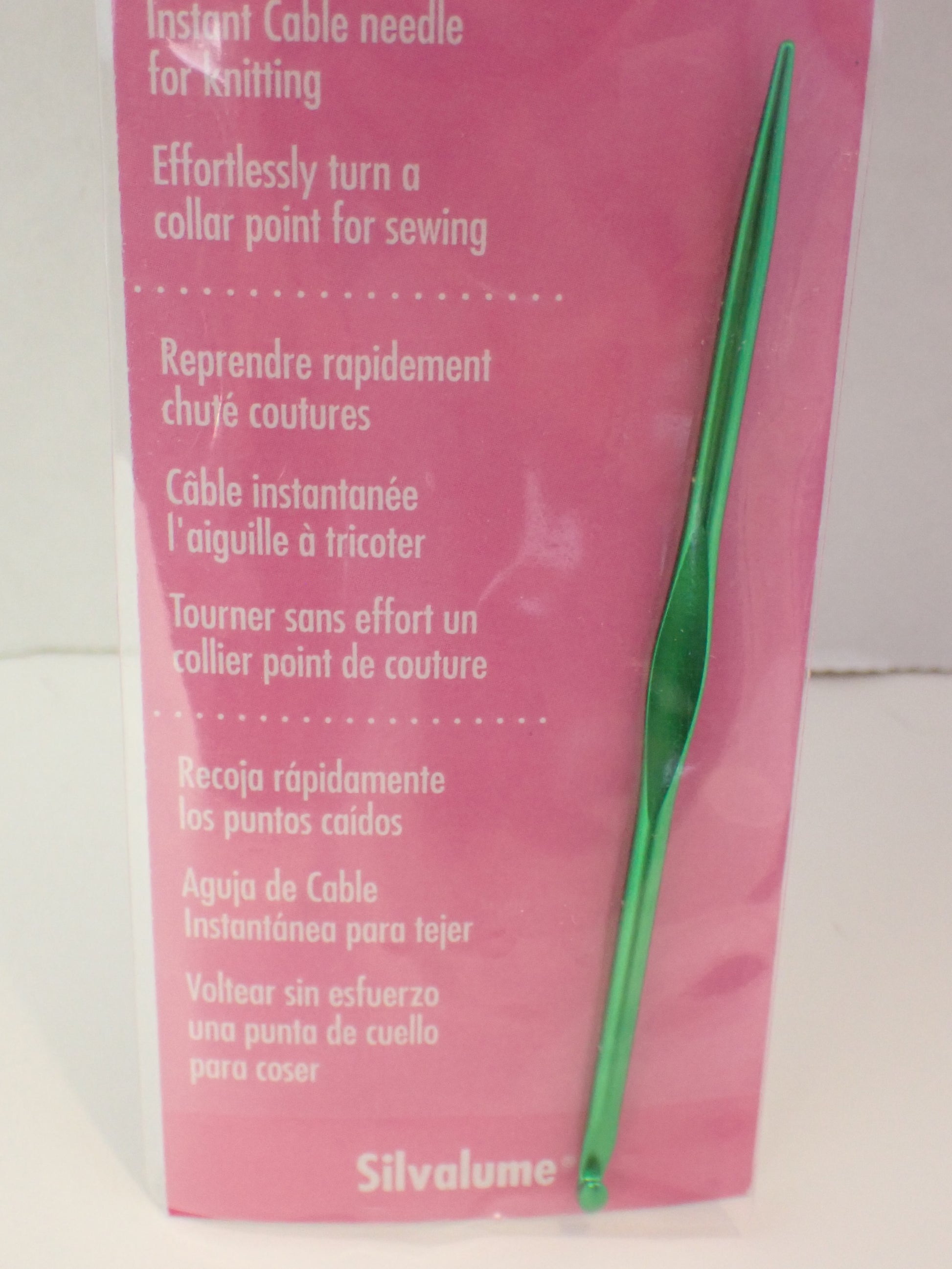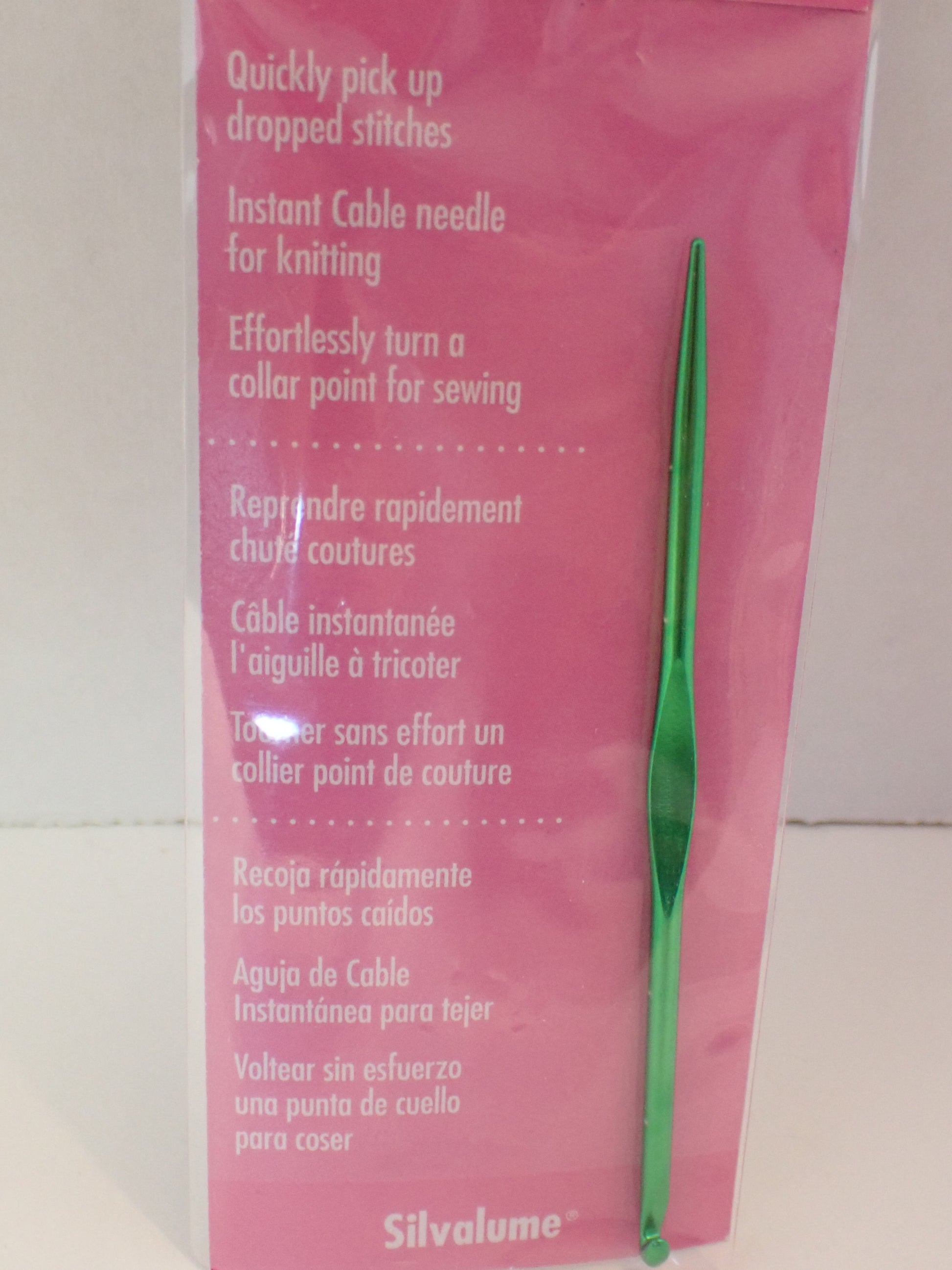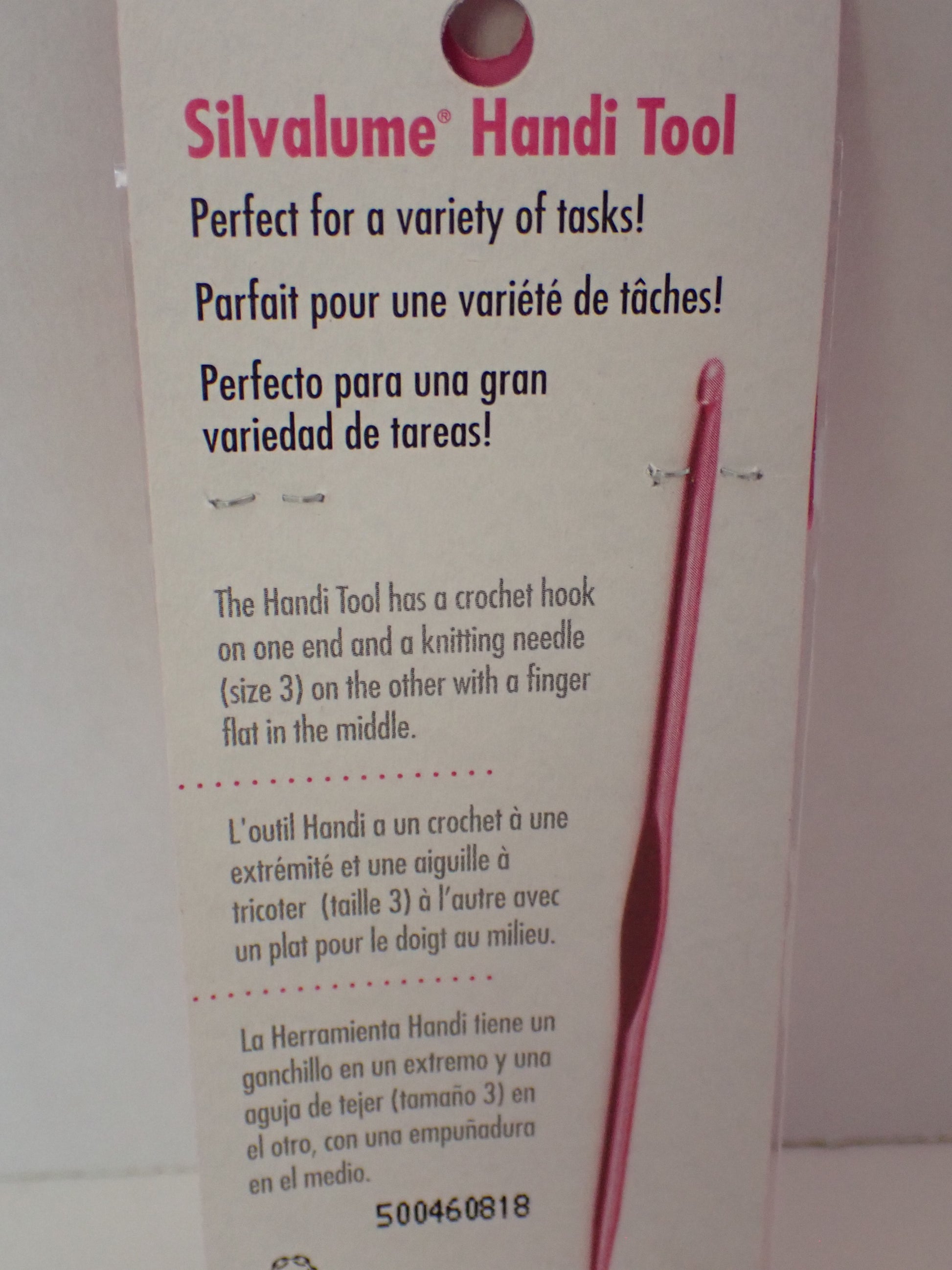 Susan Bates Silvalume Handi Tool is one of those nifty gadgets that once you have used it you wonder how you ever lived without it. This handy little tool is the combination of a knitting needle on one end and a crochet hook on the other! It is ideal for picking up dropped stitches, tying on fringe, use as a cable needle in a pinch, or as a replacement tool for the French Knitter and Knitting Knobby. Approximately 4 inch.